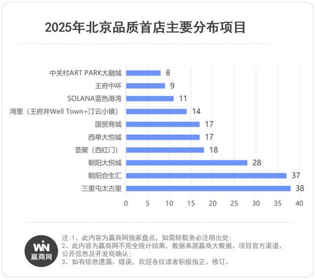头部项目的虹吸效应明显,2025年首店数量排名前10的商场吸引了全市过半的品质首店,且这些头部项目大多位于城市核心区,朝阳区依然占据绝对优势地位。