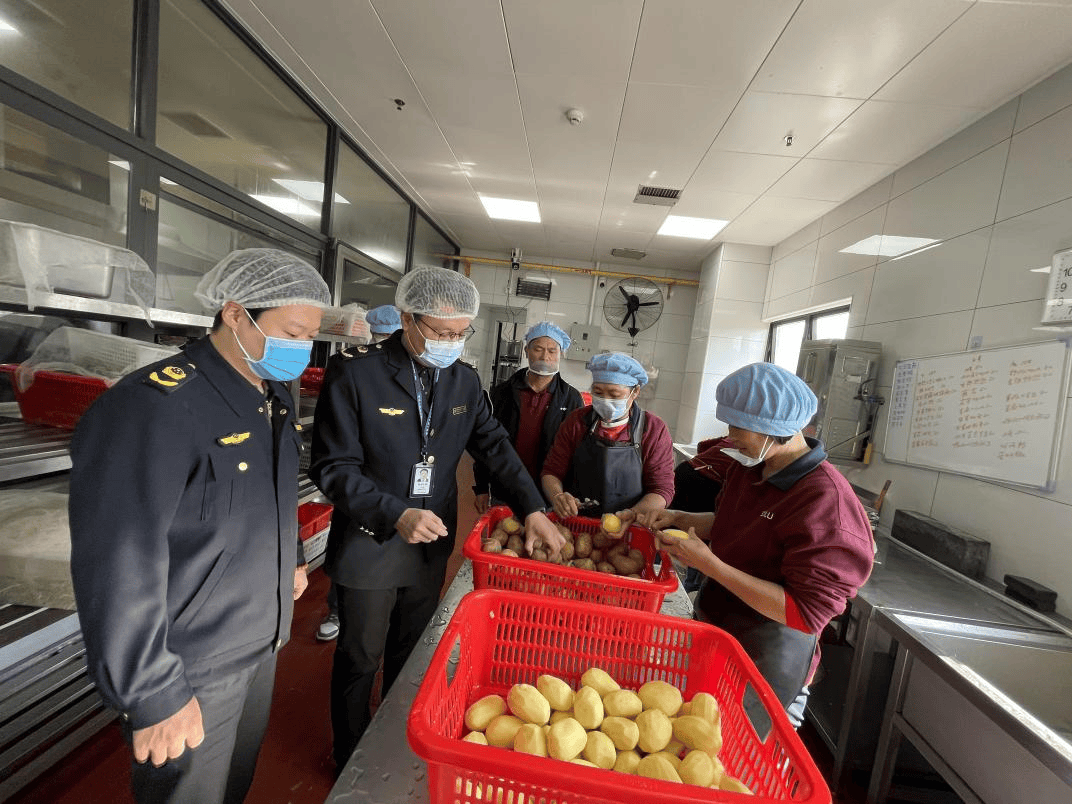 开展对集体用餐单位的全覆盖检查。执法人员对食品索证索票、加工制作流程、餐用具清洗消毒、后厨环境卫生、从业人员健康管理等关键环节进行了细致排查,累计检查集中用餐单位20家次,现场发现并督促整改问题4项。检查中,执法人员反复强调各单位必须严格执行食品安全管理制度,压实“日管控、周排查、月调度”工作机制,确保问题早发现、早预警、早处置,同时提醒集体食堂不得提供四季豆、发芽马铃薯、外购熟食、凉菜等高风险食品。