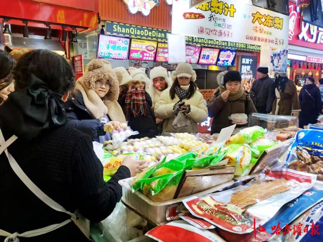 “春节前夕,道里菜市场每天的客流约为4万人,同比增长5%,客流中约80%是外地游客。这离不开每一位摊主的努力,也得益于我们针对性的服务调整。”道里菜市场办公室主任周建中说。